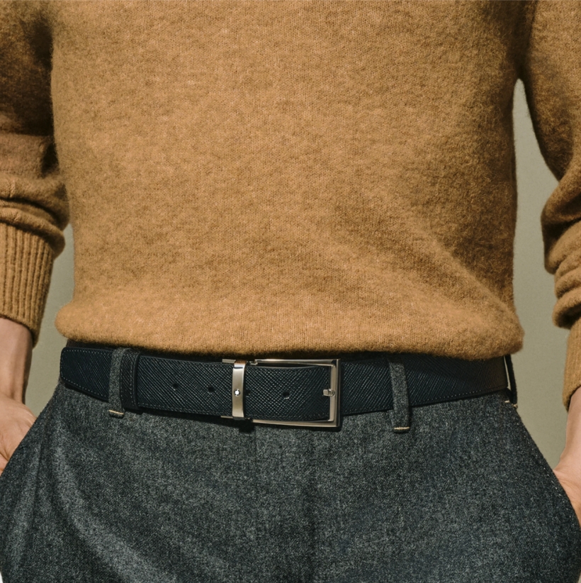 Двухсторонний мужской ремень Montblanc: кожа черного и коричневого цвета 35 мм от магазина премиальных ручек Premium Pens в Ростове-на-Дону.